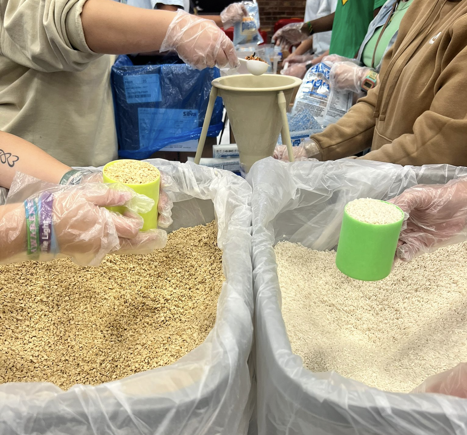 LNI facilitates the packing of nutrient rich meals in an assembly-line fashion with volunteers from local schools, businesses, and churches.